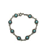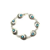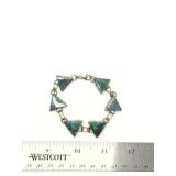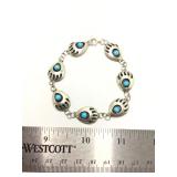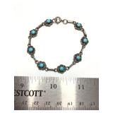 Sterling silver bracelet with turquoise stones. 7.17 grams total weight. 7.5: inches length. Hallmarked LP.