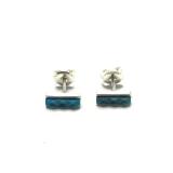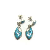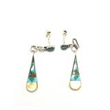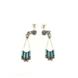 Sterling silver earrings with turquoise inlay. 3.23 grams total weight. Made by Joanne Peina.