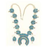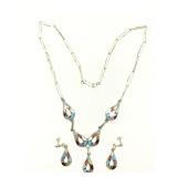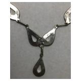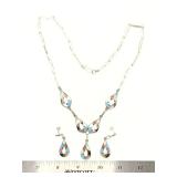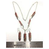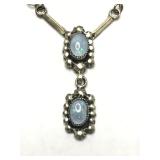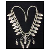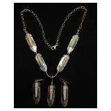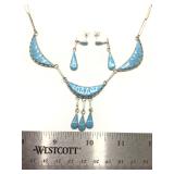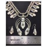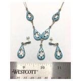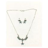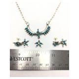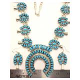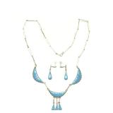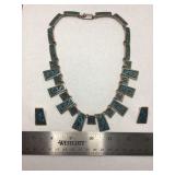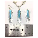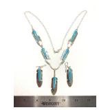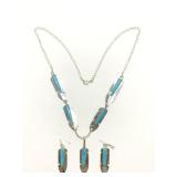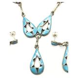 Sterling silver handmade necklace and earrings featuring turquoise inlay. 15.49 grams of total weight. Made by Antionetti Ahiyite. Necklace 20 inches in length