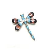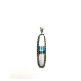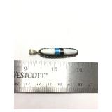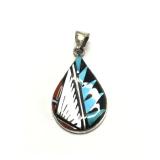 Sterling silver pendant with onyx, turquoise and mother of pearl inlay. 5.33 grams total weight. Hallmarked SUE.