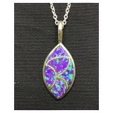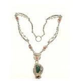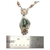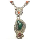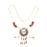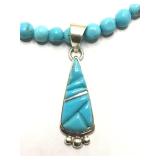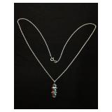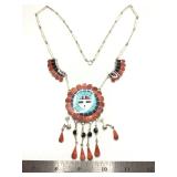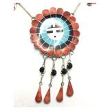 Sterling silver necklace with pendant featuring multiple stone inlay. 2.85 grams of total weight. Made by John Cheama. 18 inches in total length.