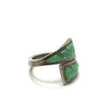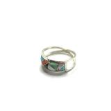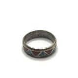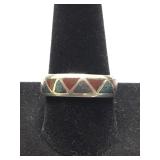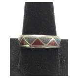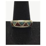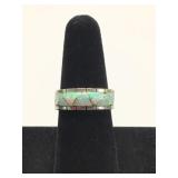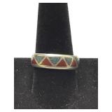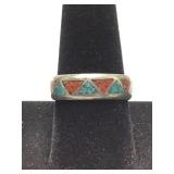 Sterling silver ring with crushed turquoise and red coral inlay. 5.95 grams total weight. Size 12 1/2.