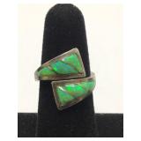 Sterling silver ring with opal inlay. 5.74 grams total weight. Size 8. Made by Gabriel "Gabby" Jurado.