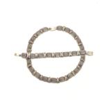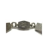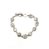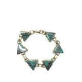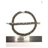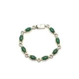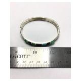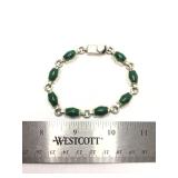 Sterling bracelet with malachite stones. 31.42 grams total weight. 8.5 inches length. Made in Taxco, Mexico. Hallmarked TC-17#