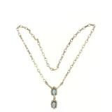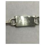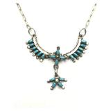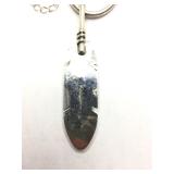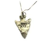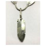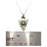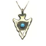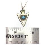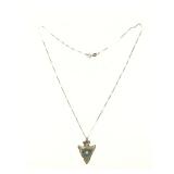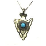 Sterling Silver necklace with arrowhead shaped pendant containing turquoise stone. 6.13 grams total weight. 18 inches length. Navajo made by Cynthia & Tanya Yazzie.