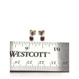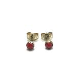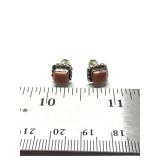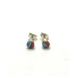 Sterling silver stud earrings with red coral stones. 0.49 grams total weight. Made by Linda Yazzie.