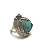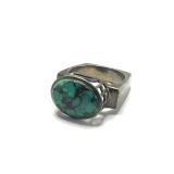 Sterling silver ring with turquoise stone. 26.71 grams total weight. Size 10 1/2. Stone will need stabilization. Hallmarked "G. Stewart"