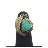 Sterling silver ring with turquoise stone. 8.97 grams total weight. Size 5 1/2.
