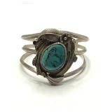 Sterling silver cuff with turquoise stone. 31.30 grams total weight.