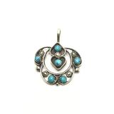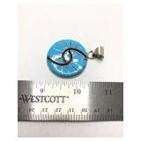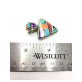 Sterling silver pendant with multiple stone inlay. 0.94 grams total weight. Made by James Cheama.