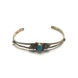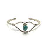 Sterling silver cuff featuring turquoise stone. 9.69 grams of total weight.
