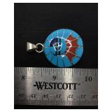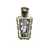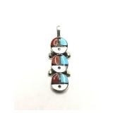 Sterling silver pendant with multiple stone inlay. 6.69 grams total weight. Made by Angus Ahiyite