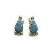 Sterling silver earrings with turquoise stones. 3.45 grams total weight. Made by Lamer Peywa.