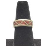 Sterling silver ring with crushed red coral inlay. 7.69 grams total weight. Size 9