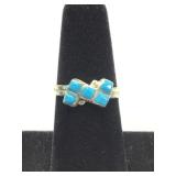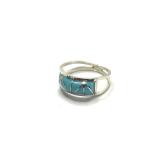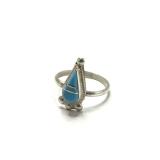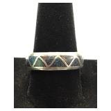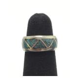 Sterling silver ring with crushed turquoise inlay. 5.86 grams total weight. Size 6 1/2.