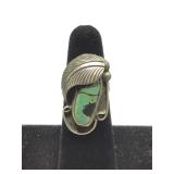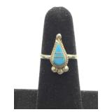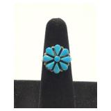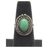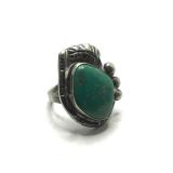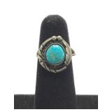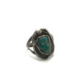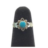 Sterling silver ring with turquoise stone. 1.95 grams total weight. Size 4 1/2. Sold by Bell Trading Post. Albuquerque, NM.