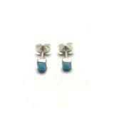 Sterling silver stud earrings with turquoise stones. 0.62 grams total weight.