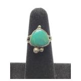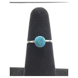 Sterling silver ring with turquoise stone. 1.04 grams total weight. Size 7. Made by Ivy Lamy.