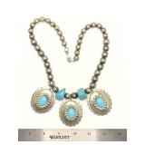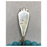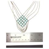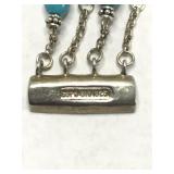 Sterling silver multiple strand necklace with turquoise beads. 15.07 grams total weight. 17 inches length.