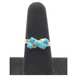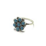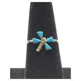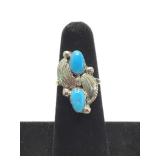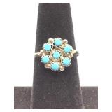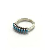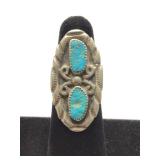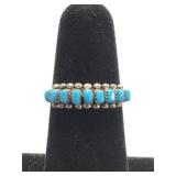 Sterling silver ring featuring turquoise stones. 3.75 grams of total weight. Size 7. Made by Irma Unkestine.