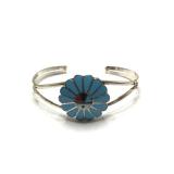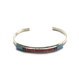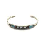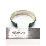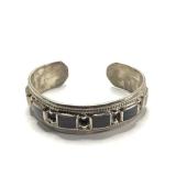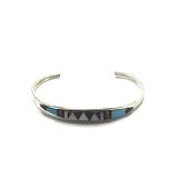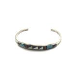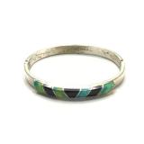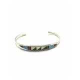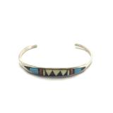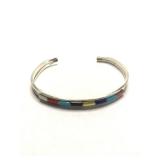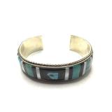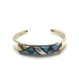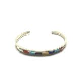 Sterling silver cuff with multiple stone inlay. 5.65 grams total weight. Made by Cena Hernandez.