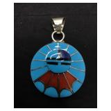 Sterling silver pendant with multiple stone inlay. 13.23 grams total weight. Made by Relio’s Inc. Albuquerque, NM.