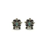 Sterling silver earrings with turquoise stones. 0.98 grams total weight. Made by Dentin Bobelu.