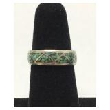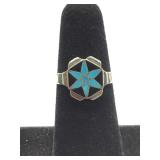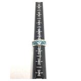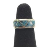 Sterling silver ring featuring crushed turquoise inlay. 5.83 grams of total weight. Size 6 1/2.