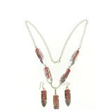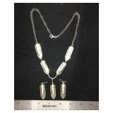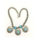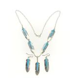 Sterling silver jewelry set featuring turquoise inlay. 22.52 grams of total weight. Approximately 19 inches length. Made by Mary Yazzie.