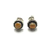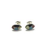 Sterling silver earrings with multiple stone inlay. 0.69 grams total weight. Made by John Cheama