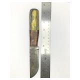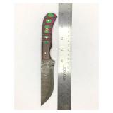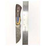 Damascus skinning knife with sheath. 4.25 inch blade length.