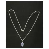 Sterling silver necklace with pendant featuring turquoise stone. 4.03 grams total weight. 18 inches length.