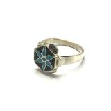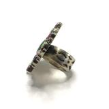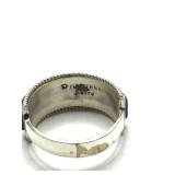 Sterling silver ring with multiple stone inlay. 3.30 grams total weight. Size 7. Made by Burdian Soseeah