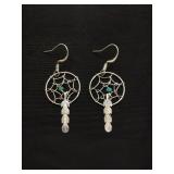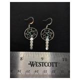 Sterling silver pearl earrings with turquoise. 2.51 grams total weight.