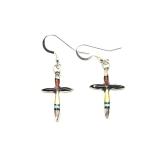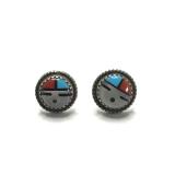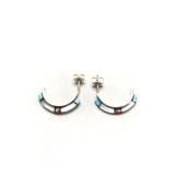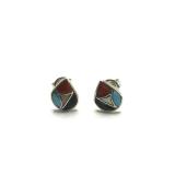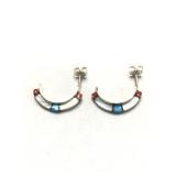 Sterling silver earrings with multiple stone inlay. 1.16 grams total weight. Made by Thurza Leekya.