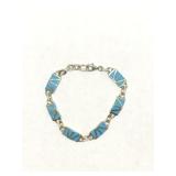 Sterling silver strand bracelet with possible turquoise beads. 28.46 grams total weight. 8 inches length.