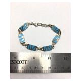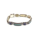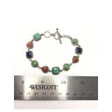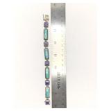 Sterling silver bracelet with possible lapis and turquoise stones. 28.43 grams total weight. 7 inches length.