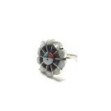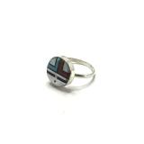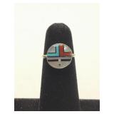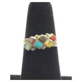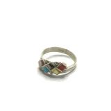 Sterling silver ring with multiple stone inlay. 1.43 grams total weight. Size 4 1/2. Made by James Cheama.