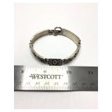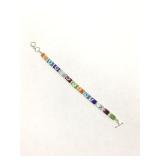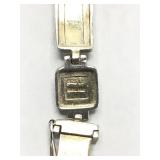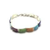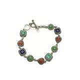 Sterling silver bracelet with multiple stone overlay. 27.83 grams total weight. Made in Mexico.