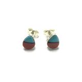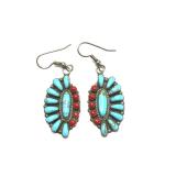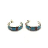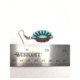 Sterling silver earrings with turquoise and red coral stones. 7.21 grams total weight. Made by Davin Benally.