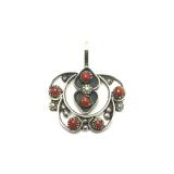 Sterling silver pendant with red coral needlepoint stones. 11.28 grams total weight. Hallmarked "B".