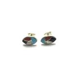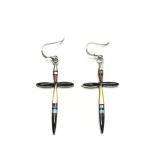 Sterling silver earrings featuring multiple stone inlay. 0.87 grams of total weight. Made by Preston Walela.