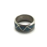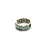 Sterling silver ring featuring crushed turquoise inlay. 8.41 grams of total weight. Size 6 1/2.