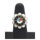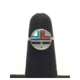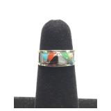 Sterling silver ring with multiple stone inlay. 3.55 grams total weight. Size 8 1/2. Made by Romero Vacit.