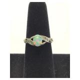 Sterling silver ring with opals. 0.85 grams total ring. Size 4 1/2.