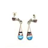 Sterling silver earrings with multiple stone inlay. 3.79 grams total weight. Made by Lynette Bowannie.