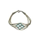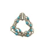 Sterling silver multi strand bracelet with turquoise beads. 5.55 grams total weight. 7 inches length.