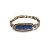 Sterling silver bracelet with amethyst gemstones and opal inlay. 18.19 grams total weight. 7 inches length.