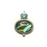 Sterling silver pendant with mother of pearl and blue topaz. 3.90 grams total weight.