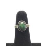 Sterling silver ring with malachite stone. 3.68 grams total weight. Size 6. Stone needs stabilization.